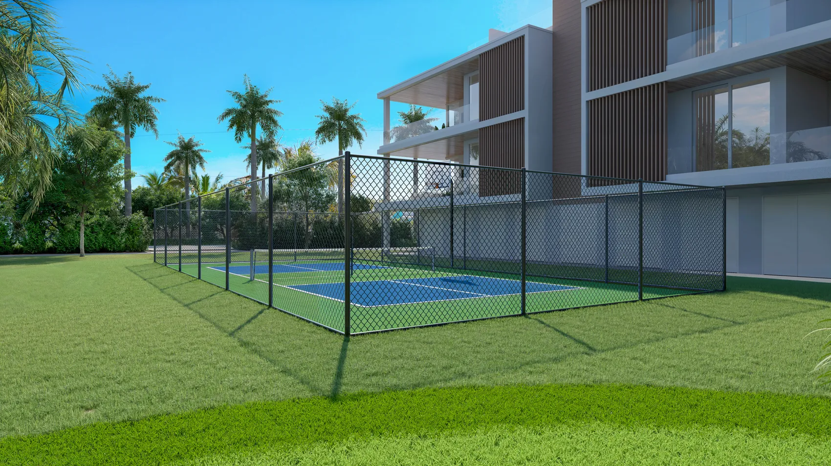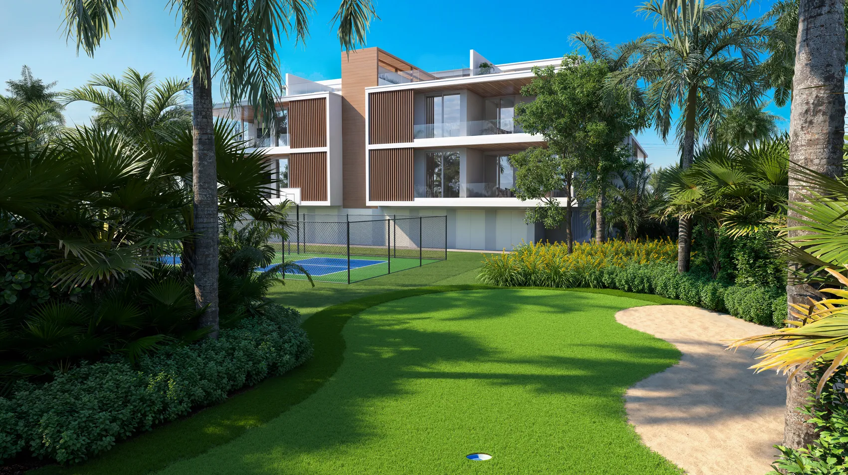 Beyond the water and wellness spaces, Evolve offers amenities that bring recreation closer to home. A landscaped putting green and multi-use sport court create opportunities for easy activity.